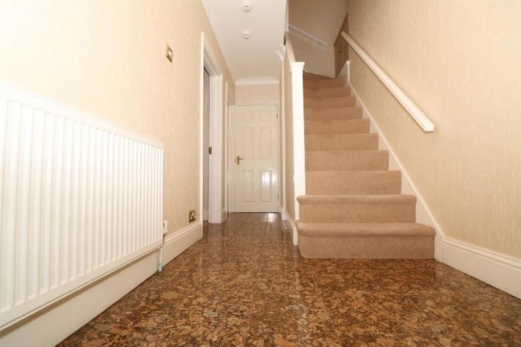 Having a ceiling light point, wall light, panelled radiator, stairs leading to the first floor and concrete flooring.