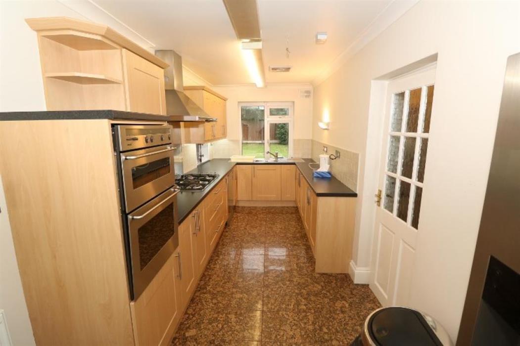 Having two ceiling light points, panelled radiator, wall and base unit with worktop over, stainless steel sink with mixer tap over, ceramic splash back wall tiles, wall mounted boiler, concrete flooring and a upvc door leading to the garden.