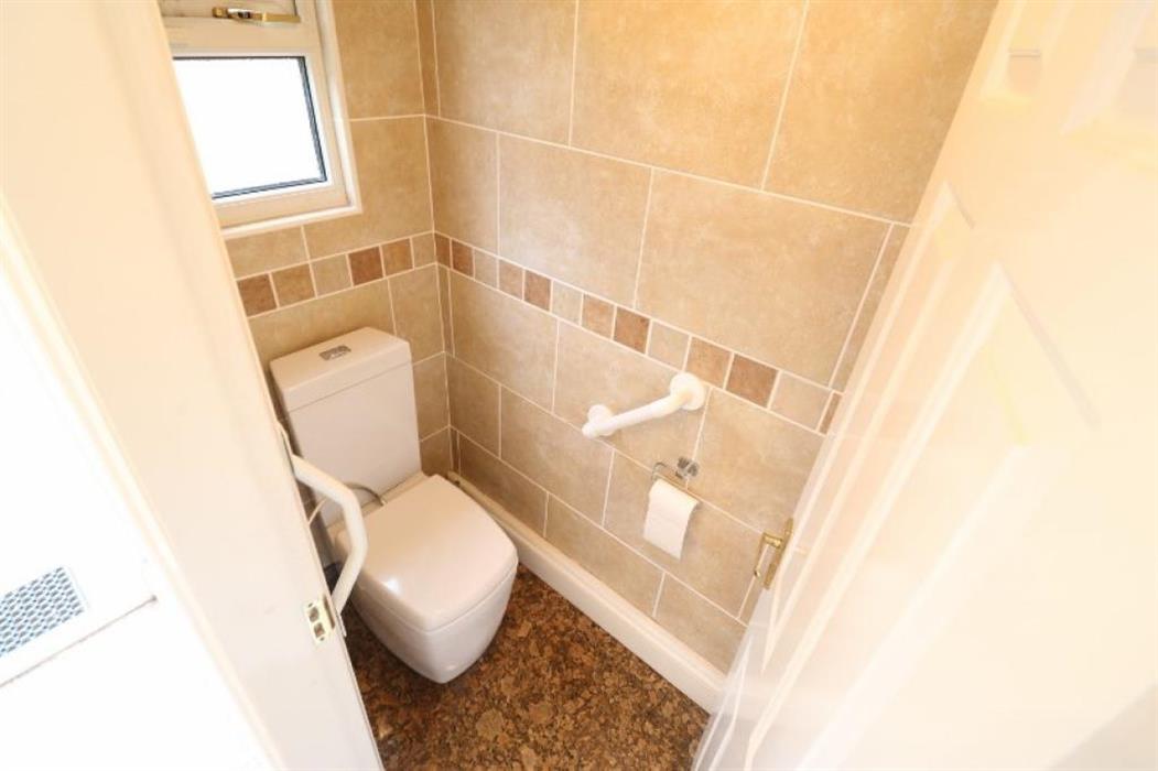 Having a ceiling light point, storage cupboard, fitted carpet and an obscure double glazed window to the side elevation.