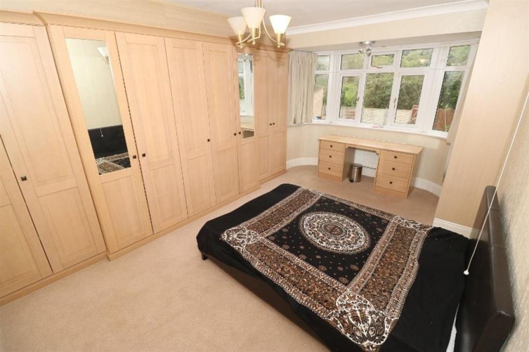 Having a ceiling light point, panelled radiator, fitted wardrobes, fitted carpet and an open bay double glazed window to the rear elevation.